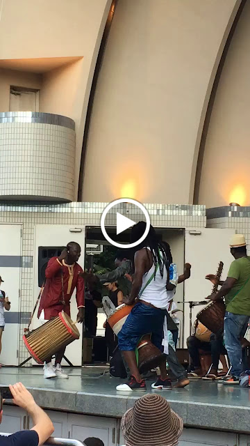音楽は今回、残念ながらコンゴ系音楽のパフォーマンス予定はなし、という事前情報は得てたのでステージものは見るつもりもなかったんだけど、コンゴ飯食べ終わった頃に良さげな北アフリカの太鼓が聴こえてきたので寄ってみたら、丁度(主に)北アフリカ各所のミュージシャンの皆さん+セネガルのアブドゥさんのサバールダンスが始まったトコだったので暫く立ち見してきた。